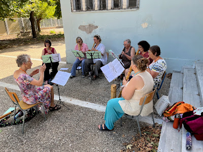 I could fill the entire BN (newsletter) with my experiences during the course, let me just say that I have come to love Greece and the Greeks, despite the heat (oh well, you get used to it) and despite the fact that a few months of preparation on Duolingo have only given me a rudimentary knowledge of the language, just enough to be able to follow the conversations at the table in general but completely insufficient to make any contribution to that conversation. Fortunately, there is such a thing as broken English and fortunately there is such a thing as the shared passion for music on homemade flutes. Speaking of passion for music: after corona, it had become somewhat of a back burner for me personally and I have given a lot of space in my life to non-musical activities. As the train took me through Italy, Austria and Germany back to our flat little country, I stared out of the window and thought how strange it was that I, completely unprepared, had enjoyed the choir I led so much during Renilde's illness and that it is even stranger that, apart of the Guild activities, music plays only a minor role in my life at the moment. High time to change that - and to thank Renilde as well as the Greeks for that insight!